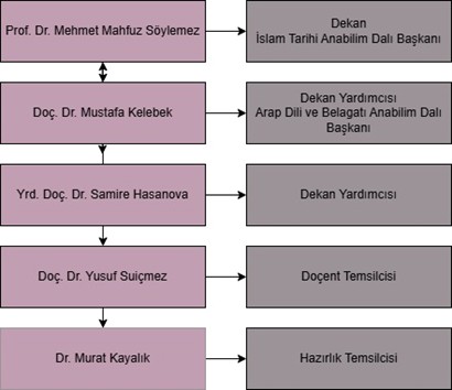 Fakülte yönetim kurulu, dekanın başkanlığında dekan yardımcıları, fakülteye bağlı bölümlerin başkanları ile varsa fakülteye bağlı enstitü ve yüksekokul müdürlerinden ve fakülte kurulunun üç yıl için seçeceği bir profesör, bir doçent, bir yardımcı doçent ve bir öğretim görevlisinden oluşur.
