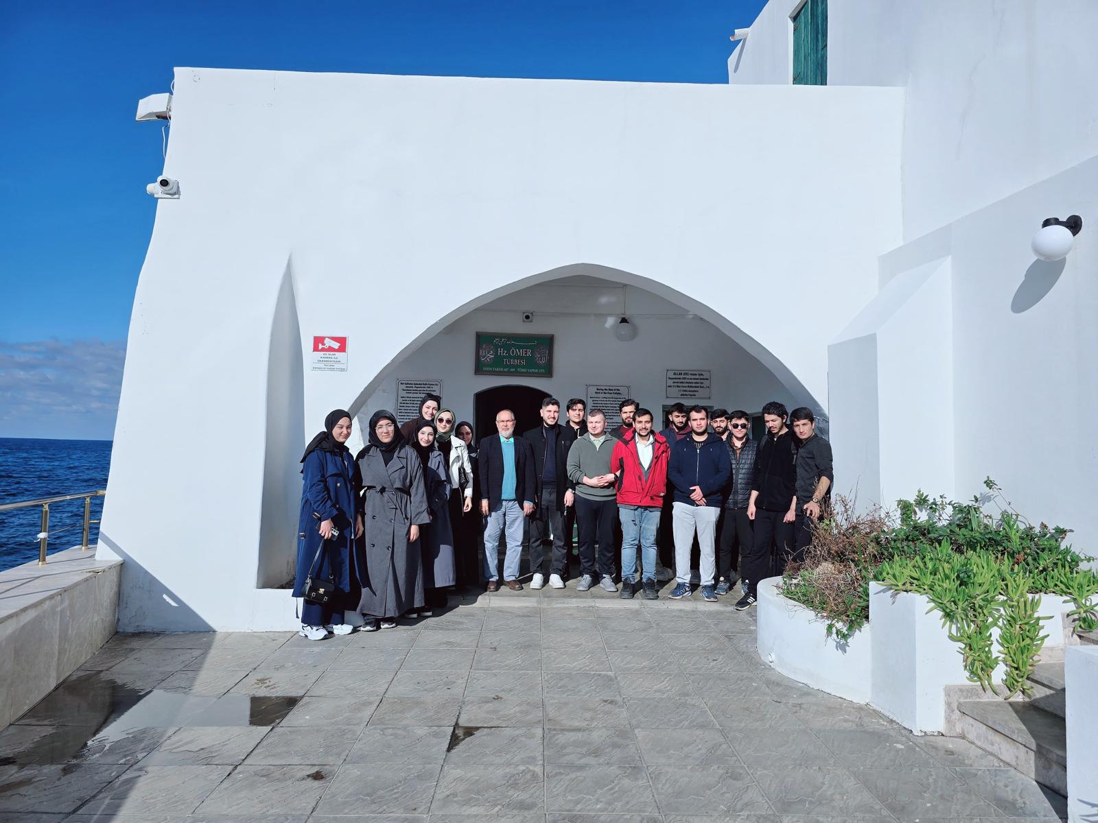 Yakın Doğu Üniversitesi İlahiyat Fakültesi Arapça Hazırlık sınıfı öğrencileri, her cuma Arapça konuşma pratiği için Kıbrıs’ın tarihi ve manevi mekanlarını ziyaret ediyor. 21 Aralık 2025 tarihinde Cuma günü öğrenciler, öğretim elemanları eşliğinde cuma namazına katılıyor ve gün boyunca Arapça iletişim kuruyor. Program, öğrencilerin Arapçayı sınıf dışına taşımasını ve dili doğal ortamda kullanmasını amaçlıyor. Ziyaretler sırasında Kıbrıs’ın İslam tarihiyle ilgili temel bilgiler Arapça olarak paylaşılıyor. Bu hafta öğrenciler Girne’nin Çatalköy bölgesinde bulunan Hz. Ömer Türbesini ziyaret etti. Türbe, İslam’ın ilk dönemlerinde Kıbrıs’a düzenlenen seferlerle ilişkilendirilmektedir. Miladi 647 yılında gerçekleştirilen sefer sırasında şehit düşen kumandan Hz. Ömer ve diğer altı sahabenin naaşlarının, bölgede bulunan bir mağaraya defnedildiği kabul ediliyor. 1571 yılında Osmanlı Devleti’nin Kıbrıs’ı fethetmesinin ardından, naaşların bulunduğu alan muhafaza altına alınmış ve buraya bir türbe inşa edilmiştir. Hz. Ömer Türbesi, Kıbrıs’taki en eski İslami ziyaretgahlardan biri olarak bilinmektedir.