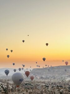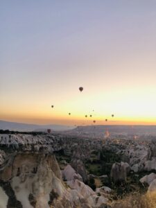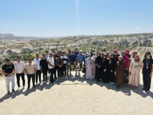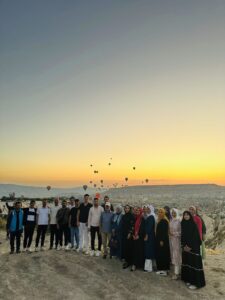 Takviye Arapça kursu kapsamında Ankara’da bulunan öğrencilerimiz, sabahın erken saatlerinde Kapadokya seyir tepesinde balonların mistik kalkışını izleyerek geziye başladılar. Öğrencilerimiz, rehberler eşliğinde sırasıyla Avanos’un el sanatlarıyla ünlü çömlekçilerini, Kızılırmak’ın meşhur köprüsünü ve turistik mekanlarını gezdiler. Ardından Meşhur Kapadokya Hanı’nın tarihi atmosferini yaşayarak geçmişe yolculuk yaptılar. Doğal güzellikleriyle ünlü Paşabağ Peri Bacaları’nda gezip, buranın eşsiz güzelliklerini gözlemleyen öğrencilerimiz daha sonra Tarihi Çömlekçi atölyelerini ziyaret ederek, el yapımı çömleklerin inceliklerini öğrendiler.