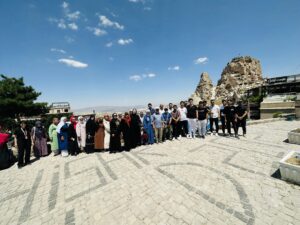 Günün devamında tarihi ve turistik bir başka zirve noktası olan Uçhisar Kalesi’ni ziyaret ederek Kapadokya’nın eşsiz doğal manzaralarını tepeden seyretme fırsatı yakaladılar. Öğle yemeği sonrasında ise Kapadokya’nın en meşhur üç peri bacası olan Üç Güzeller Peri Bacaları’nı ziyaret ettiler.