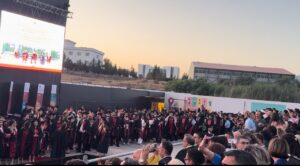 Yakın Doğu Üniversitesi’nin 20 fakülte, 3 yüksekokul ve Lisansüstü Eğitim Enstitüsü’nden mezun olmaya hak kazanan öğrencilerin geleceğe ilk adımlarını atacakları “Mezuniyet Şöleni” başladı. Kampüs içerisinde kurulan MOE Sahne’de düzenlenen törenlerin ilk akşamında Yakın Doğu Üniversitesi’nin Atatürk Eğitim, Fen-Edebiyat, Mühendislik, İnşaat ve Çevre Mühendisliği, İktisadi ve İdari Bilimler, Mimarlık, Güzel Sanatlar ve Tasarım, Hukuk, İletişim ve İlahiyat Fakültesi fakültelerinden 960 mezun öğrenci mezuniyet coşkusunu aileleri ile birlikte yaşadı.